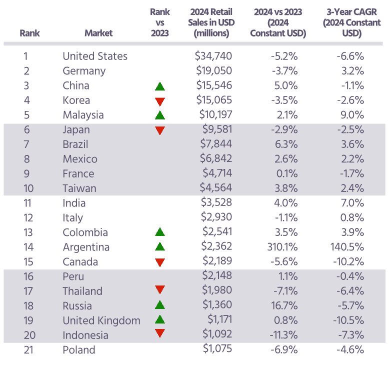 글로벌 시장은 2022년과 2023년의 연속적인 매출 감소 이후 2024년 전체 매출은 0.05% 감소하면서 사실상 보합세를 나타냈다.