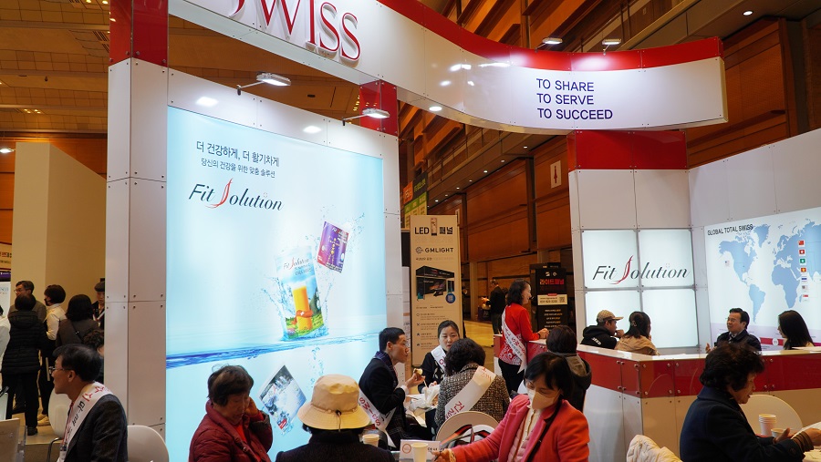 3일간 진행된 이번 행사에서 토탈스위스코리아는 대표제품 핏솔루션(Fit Solution)의 우수성을 대중에게 알리고, 누구에게나 무제한으로 시음할 수 있는 기회를 제공하면서 참관객들의 발길을 붙들었다. 특히 참관객과 사업자들의 건강상담을 위해 TSK CEO 왕웬친 회장이 한 달여 만에 다시 한국을 찾았다.