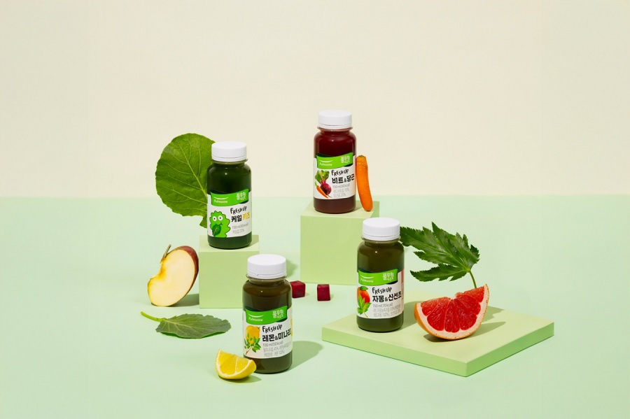 ‘프레시업 자몽&신선초’는 국산 유기농 신선초에 자몽, 배, 오렌지를 더해 상큼하고 깔끔한 맛을 살린 제품이다. ‘프레시업 레몬&미나리’는 국산 유기농 돌미나리에 레몬, 파인애플, 솔잎을 넣어 채소 섭취는 물론 음용 시 청량감까지 느낄 수 있다.