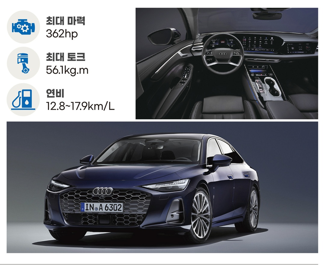 실내는 11.9인치 디지털 계기판, 14.5인치 중앙 디스플레이, 10.9인치 보조 디스플레이로 구성된 파노라믹 인터페이스로 아우디만의 디지털 콕핏을 완성했다. 여기에 이중접합 유리, 개선된 엔진 마운트와 기어 구조로 실내 소음을 기존보다 약 30% 감소했다고 전했다.