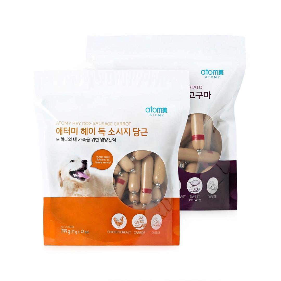 ▲ 애터미는 휴먼그레이드 펫 식품의 유행을 반영하여 사람이 먹을 수 있는 수준의 펫 제품인 ‘애터미 헤이 독’, ‘애터미 헤이 독 소시지’, ‘애터미 헤이 캣’ 등의 제품을 판매하고 있다. 국내 유일, 반려동물용 생산시설에서 생산되는 이 제품들은 원료 출처가 확실한 안전한 원료만을 사용하여 만들어지는 제품으로 옥수수, 밀, 쌀 등이 사용되지 않아 곡물 알레르기가 있는 반려동물에게도 안심하고 먹일 수 있다.