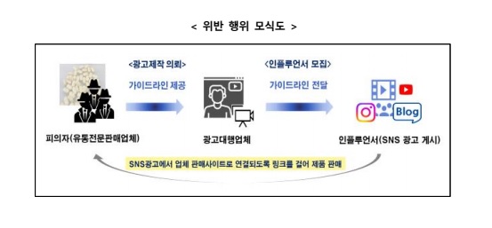 피의자들은 개인 SNS에 특정 제품에 대한 후기를 작성하는 것이 가능하다는 점을 노려 인플루언서에게 ‘한 달에 7kg 감량’, ‘초강력 식욕억제’ 등 광고 키워드를 전달하고 해당 키워드를 활용해 자신의 체험 후기인 것처럼 영상 등을 제작하여 게시하도록 하는 수법으로 불법 광고하며 제품을 판매했다.