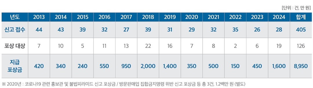 신고포상제 시행 이후 8,950만 원의 누적 포상금 지급