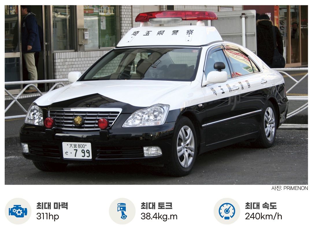 일본 경찰은 수십 년간 고급차 및 법인차로 명성을 쌓아온 ‘토요타 크라운’을 대표적인 경찰차로 사용하고 있다. 토요타 크라운이 일본 내에서 내구성과 신뢰성으로 명성이 자자하다는 점이 선정 배경이 됐다는 후문이다.