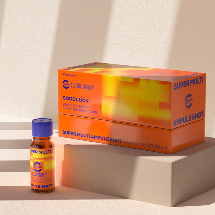 비타500 수퍼멀티앰플샷은 비타민C 1,000mg을 포함해 총 10종의 비타민과 미네랄을 함유한 제품이다. 비타민A, 비타민B군, 비타민D, 나이아신, 비오틴, 아연 등이 성인 1일 영양 성분 기준치 100%를 충족해 하루 한 병으로 균형 잡힌 영양섭취가 가능하도록 설계됐다. 30ml 용량으로 휴대가 간편하고 물 없이 섭취할 수 있어 누구나 부담없이 마실 수 있다.