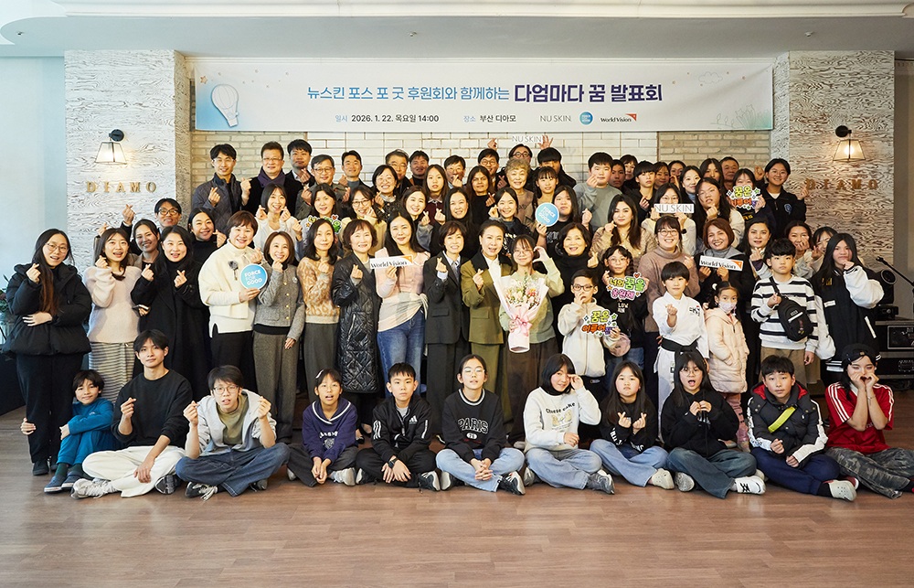 지난 1월 22일에는 한 해 동안 진행된 진로 교육을 마무리하며 부산 송정호텔에서 ‘다 엄마다’ 꿈 발표회를 개최했다. 이번 행사는 작년 교육을 수료한 다문화 가정 아동·청소년들이 그간의 배움과 성장을 무대 위에서 직접 표현하는 자리로 마련됐다. 행사에는 뉴스킨 임직원 및 회원 자치 봉사 단체 ‘포스 포 굿 후원회’ 회원 등 90여 명이 참석해 아이들의 꿈과 미래를 응원했다.