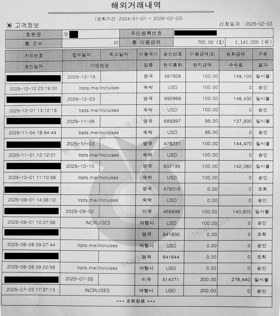 C씨는 2026년 1월 전남영광경찰서에 A씨를 사기 혐의로 경찰에 고발했다. 하지만 A씨에게 개별 송금한 200만 원, 그리고 매달 100달러씩 입금했던 금액을 돌려받지 못하고 있다. 해당 사건을 담당하고 있는 전남영광경찰서 관계자는 “피의자 진술 조사를 마친 상황”이라며 “현재 피의자 주소지 관할서로 사건이 이송됐다”고 밝혔다. 현재 해당 사건은 충남공주경찰서에서 사건을 넘겨받아 수사를 이어가고 있다. ▷ 인크루즈 환불 거부 피해자의 이체내역