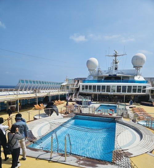 거대한 선박이 눈앞에 모습을 드러내자 참가단 사이에서는 자연스럽게 감탄이 흘러나왔다. 길이 261m, 약 7만 7,000톤 규모의 이 크루즈는 총 14개 층에 972개 객실을 갖추고 있으며 약 1,900명이 동시에 탑승할 수 있다.